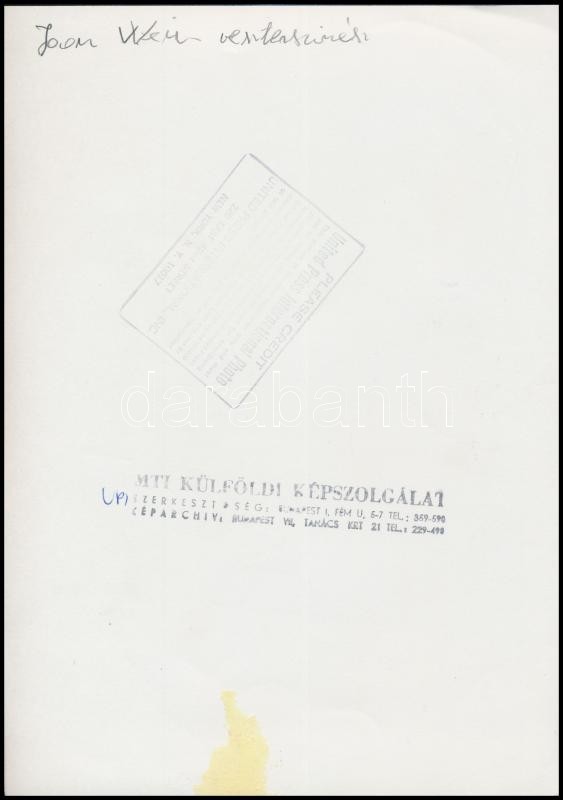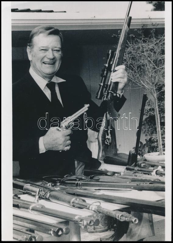 John Wayne (1907-1979) amerikai western színész fotója, United Press International Photo, MTI Külföldi Képszolgálat, sajtófotó, hátoldalán pecséttel jelzett, 24x17 cm