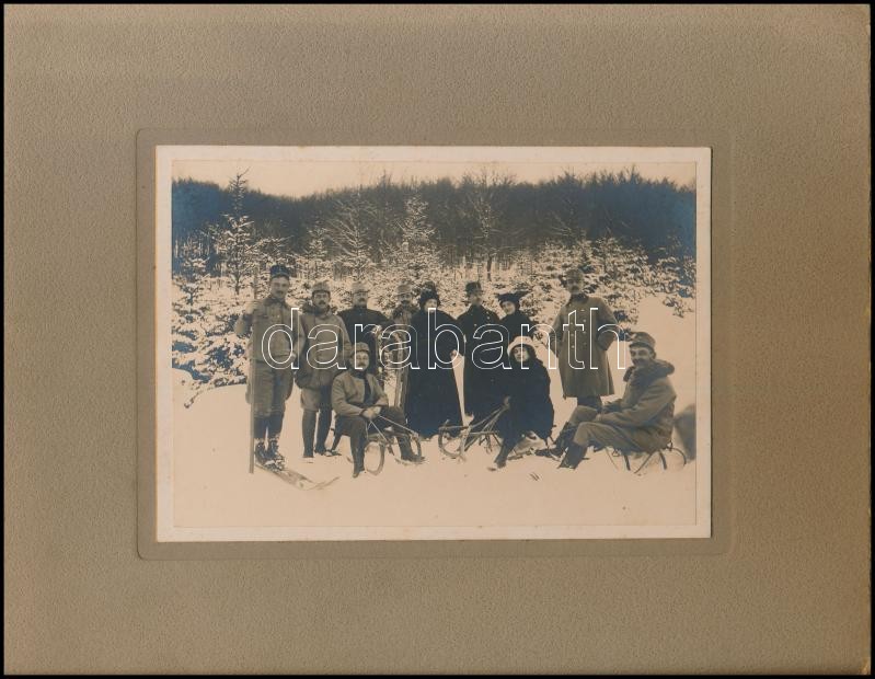 cca 1910-1920 Szánkózó társaság, közte katonák, kartonra kasírozott fo... https://www.darabanth.com/hu/331-Gyorsarveres/331.0/Festmeny-mutargy-papirregiseg-egyeb/Foto~500019/cca-1910-1920-Szankozo-tarsasag-kozte-katonak-kartonra-kasirozott-foto-11-5C39716-5-cm~II1828874