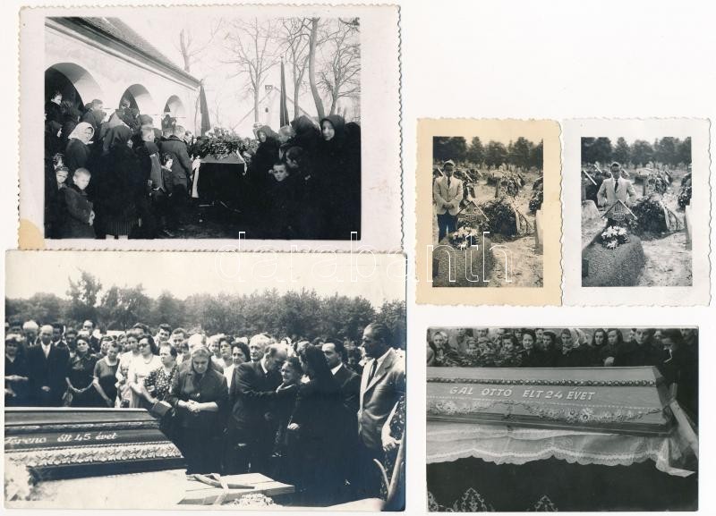 Leírás: cca 1940-1960 7 db temetési fotó, különböző méretben, közte pecséttel jelzett is