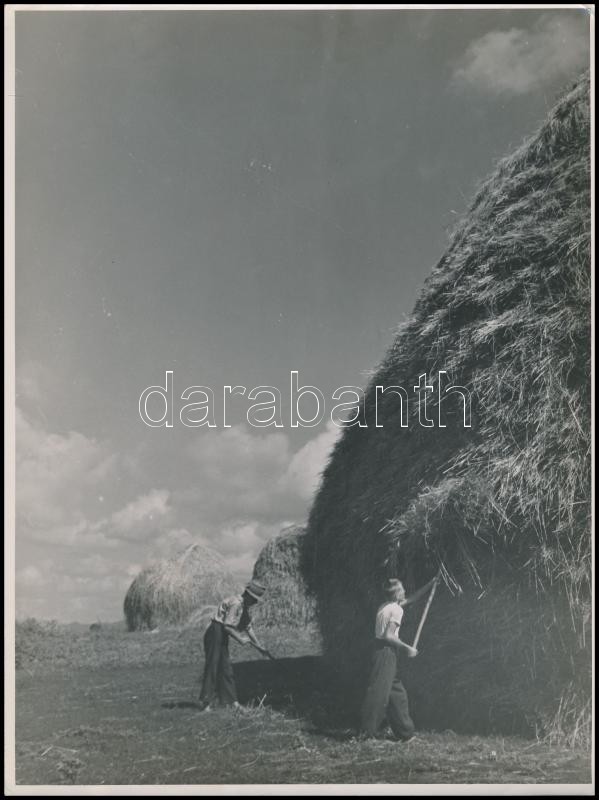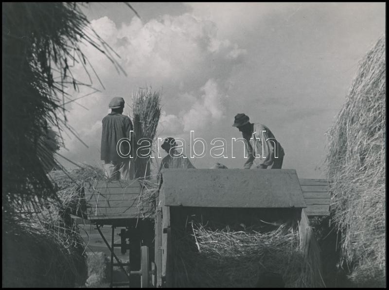 Leírás: cca 1955 Osoha László (1899-1970) budapesti fotóművész hagyatékából 2 db vintage fotó (Cséplés), az egyik pecséttel jelzett), 24x18 cm és 17x23 cm