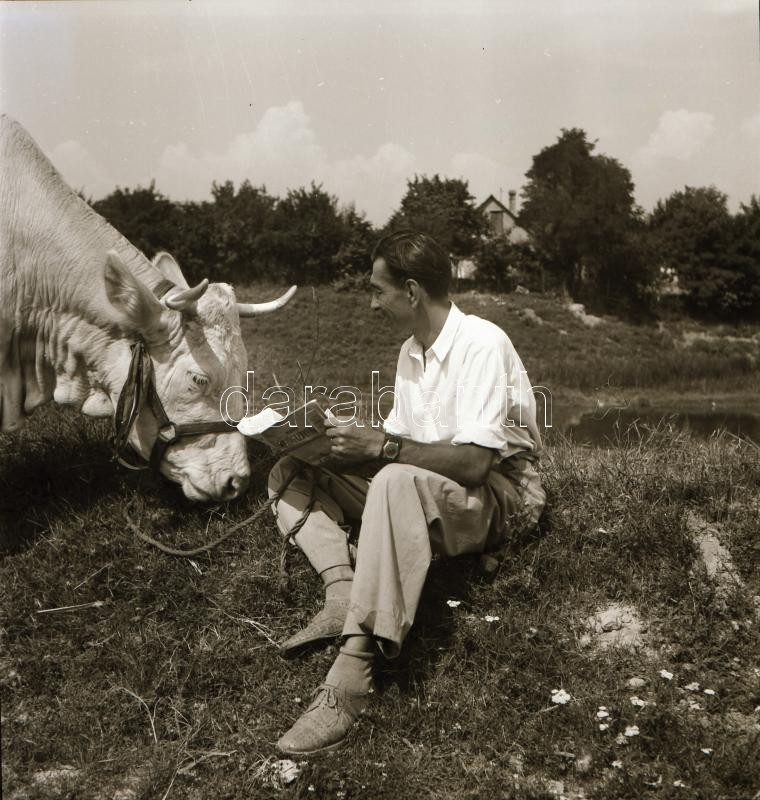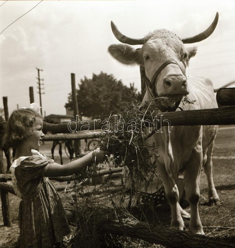 cca 1956 Kalocsa, fotóriport a tehéntartásról, Kotnyek Antal (1921-1990) budapesti fotóriporter hagyatékából 30 db vintage negatív, feliratozva a tároló tasakon, 6x6 cm