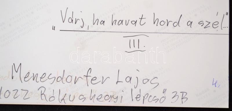 cca 1993 Menesdorfer Lajos (1941-2005) budapesti fotóművész hagyatékáb... https://www.darabanth.com/hu/331-Gyorsarveres/331.0/Festmeny-mutargy-papirregiseg-egyeb/Foto~500019/cca-1993-Menesdorfer-Lajos-1941-2005-budapesti-fotomuvesz-hagyatekabol-feliratozott-vintage~II1845022