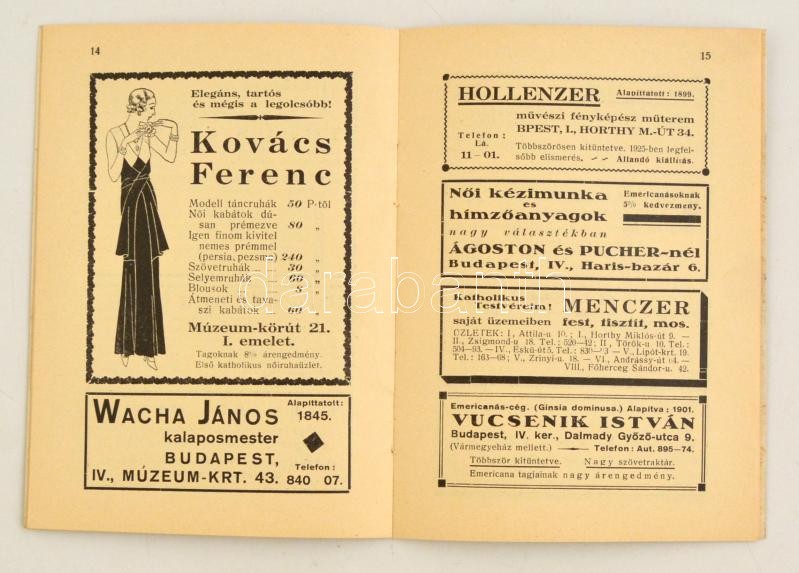 1931 Foederatio Emericana katolikus szövetség gazdasági hivatala által a tagok részére kiadott füzet, a szövetség részére szállító kereskedők üzleteiben elérhető termékekről és kedvezményekről, 26p