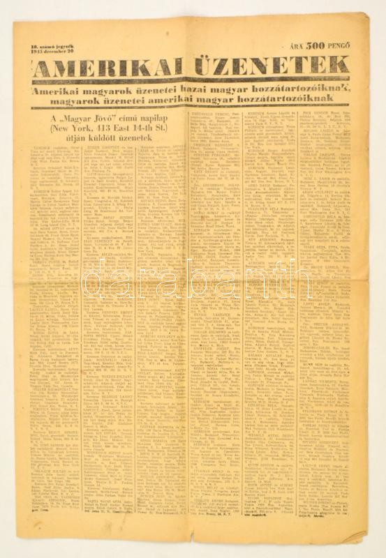 1945 Amerikai üzenetek. 1945.december 20., bejelöléssel. https://www.darabanth.com/hu/331-Gyorsarveres/331.0/Festmeny-mutargy-papirregiseg-egyeb/Nyomtatvanyok~500029/1945-Amerikai-uzenetek-1945december-20-bejelolessel~II1845301
