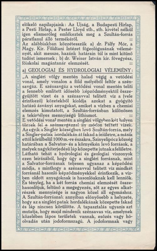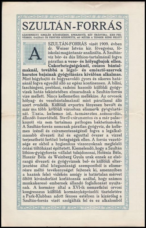 cca 1910 A singléri Szultán-forrás ismertető prospektusa https://www.darabanth.com/hu/331-Gyorsarveres/331.0/Festmeny-mutargy-papirregiseg-egyeb/Nyomtatvanyok~500029/cca-1910-A-singleri-Szultan-forras-ismerteto-prospektusa~II1828738