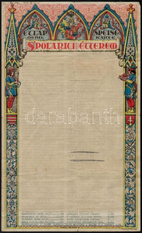 cca 1930 A Spolarich Étterem díszes étlapja, gépelt szöveggel, Kónya Z... https://www.darabanth.com/hu/331-Gyorsarveres/331.0/Festmeny-mutargy-papirregiseg-egyeb/Nyomtatvanyok~500029/cca-1930-A-Spolarich-Etterem-diszes-etlapja-gepelt-szoveggel-Konya-Zoltan-altal-tervezett-~II1845995