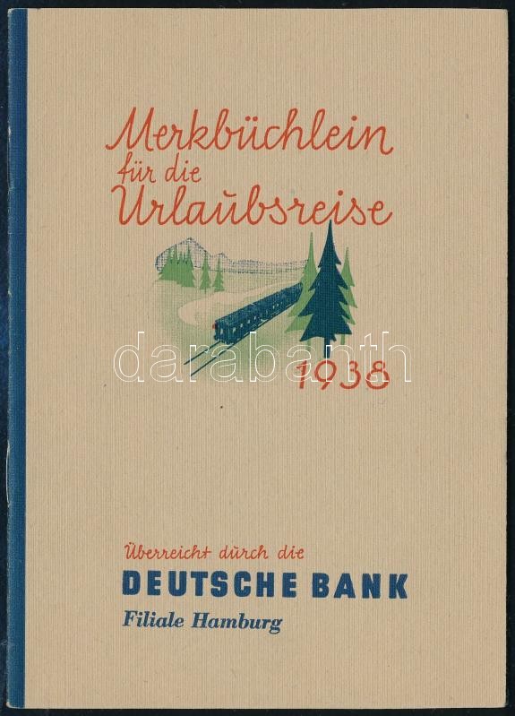 Leírás: cca 1938 Deutsche Bank: Merkbüchlein für die Urlaubsreise + Hannoversche Lebensversicherung prospektusok
