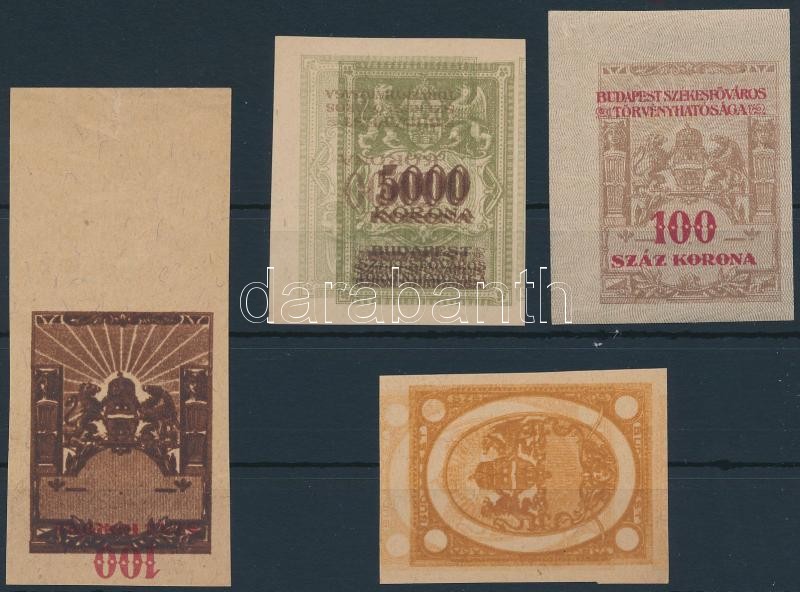 Leírás: Budapest 4 db okmánybélyeg fázisnyomat