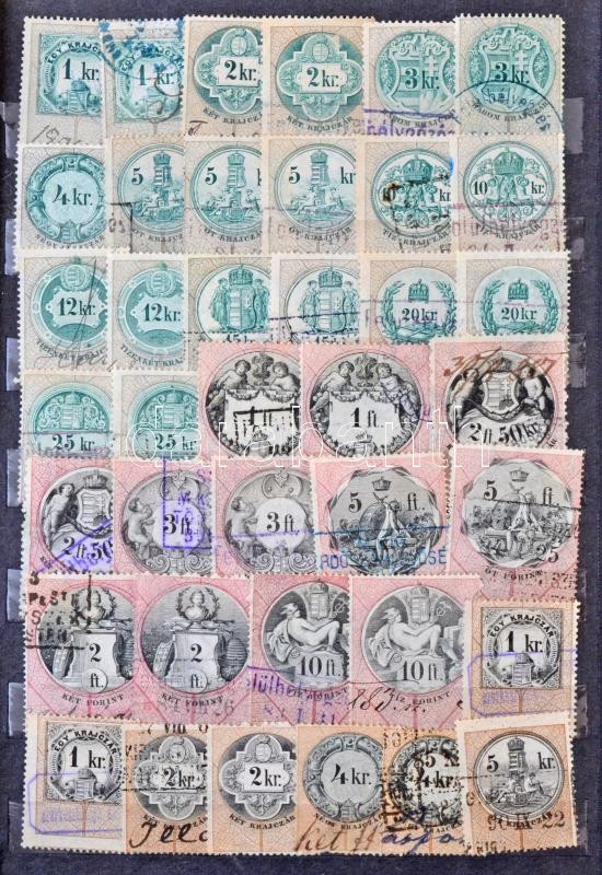 Leírás: Okmány- és illetékbélyegek, több mint 500 db-os tétel jó darabokkal, változatokkal 10 lapos berakóban piros borítóval