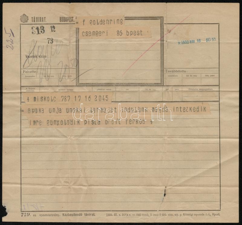 1859-1932 3 db reklámos távirat és kézbesítési ív (Hunyadi János keser... https://www.darabanth.com/hu/331-Gyorsarveres/331.0/Festmeny-mutargy-papirregiseg-egyeb/Okmanyok~500016/1859-1932-3-db-reklamos-tavirat-es-kezbesitesi-iv-Hunyadi-Janos-keseruviz-Nektar-Gyogy~II1848915