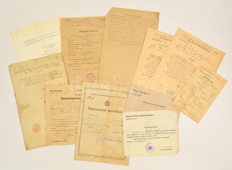 1866-1945 Vegyes okmány tétel, összesen 12 db, közte származási igazol... https://www.darabanth.com/hu/331-Gyorsarveres/331.0/Festmeny-mutargy-papirregiseg-egyeb/Okmanyok~500016/1866-1945-Vegyes-okmany-tetel-osszesen-12-db-kozte-szarmazasi-igazolvany-buntetoparancs-~II1847930