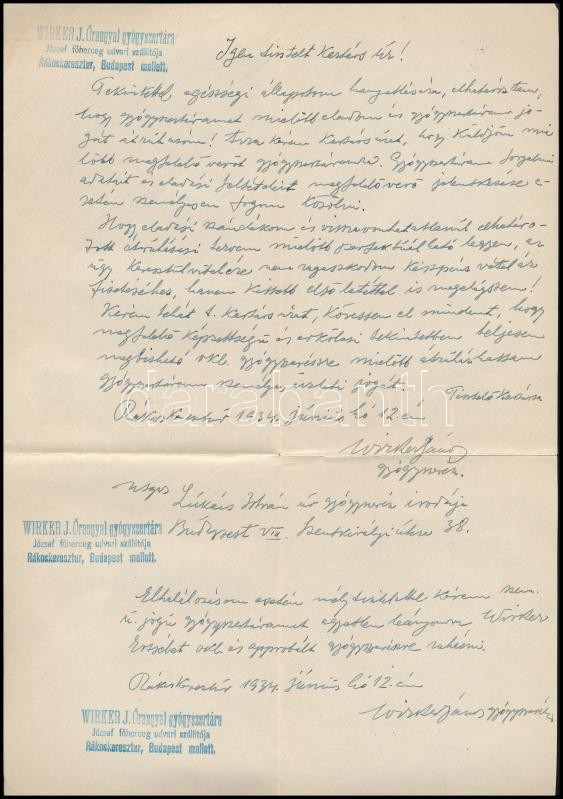 1934-1941 Wirkner János rákoskeresztúri gyógyszerész által írt 3 db le... https://www.darabanth.com/hu/331-Gyorsarveres/331.0/Festmeny-mutargy-papirregiseg-egyeb/Okmanyok~500016/1934-1941-Wirkner-Janos-rakoskereszturi-gyogyszeresz-altal-irt-3-db-level-egyiken-a-gyogys~II1848324