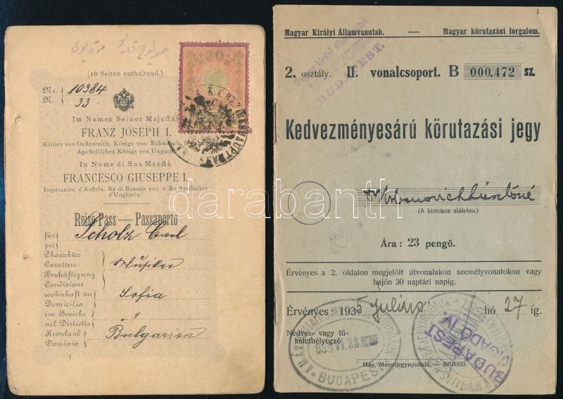 Leírás: cca 1900-1935 3 db utazási igazolvány és hiányos útlevél