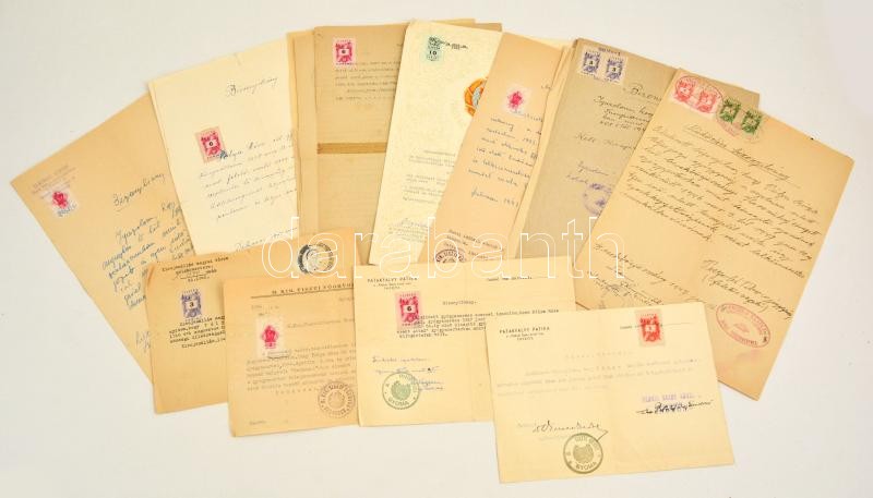 Leírás: cca 1940-1960 Különféle okmánybélyeges bizonyítványok, igazolások, stb., összesen kb. 10 db