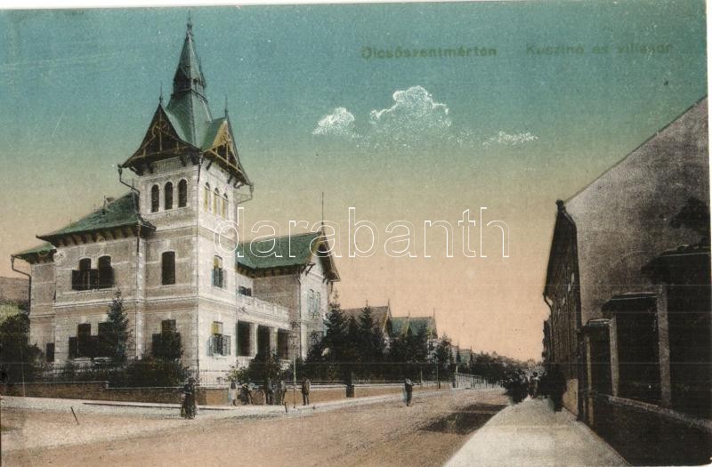 Leírás: Dicsőszentmárton, Tarnaveni, Diciosanmartin; Kaszinó és villasor / casino, villas (ragasztónyom / gluemarks)