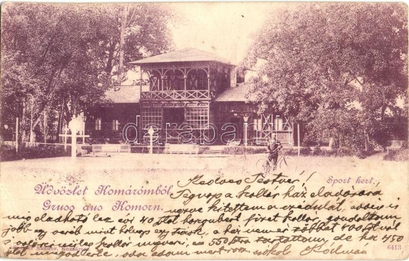 1900 Komárom, Komárno; Sport kert, kerékpáros férfi. Kiadja Spitzer Sá... https://www.darabanth.com/hu/331-Gyorsarveres/331.0/Kepeslapok/Felvidek~2000007/1900-Komarom-Komarno-Sport-kert-kerekparos-ferfi-Kiadja-Spitzer-Sandor-sport-garden-man~II1849294