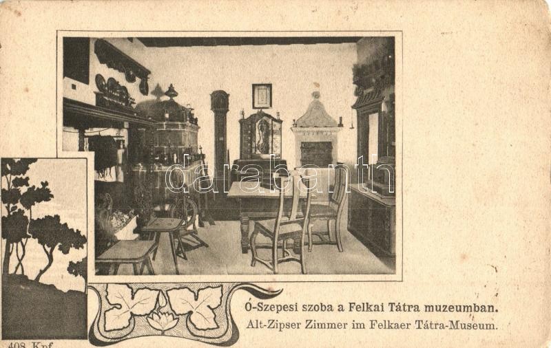 Leírás: Felka, Velka pod Tatrou (Tátra); Ó-szepesi szoba a Tátra múzeumban / museum interior. Feitzinger Ede 1902-12. 408. Kpf. Art Nouveau (EK)