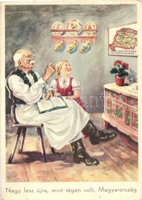 Nagy lesz újra, mint régen volt, Magyarország. Hiszek Magyarország Feltámadásában! Magyar Nemzeti Szövetség, Magyar Földrajzi Intézet Rt. / Hungarian irredenta propaganda. s: Köves (EB)