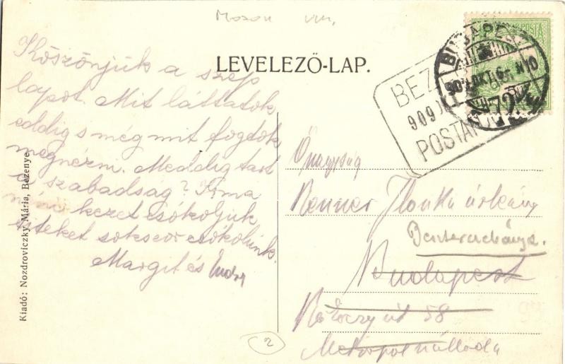 Leírás: Bezenye, Pallesdorf; Fő utca, gyerekek, templom. Kiadja Nozdroviczky Mária + 1909 Bezenye postai ügynökségi pecsét
