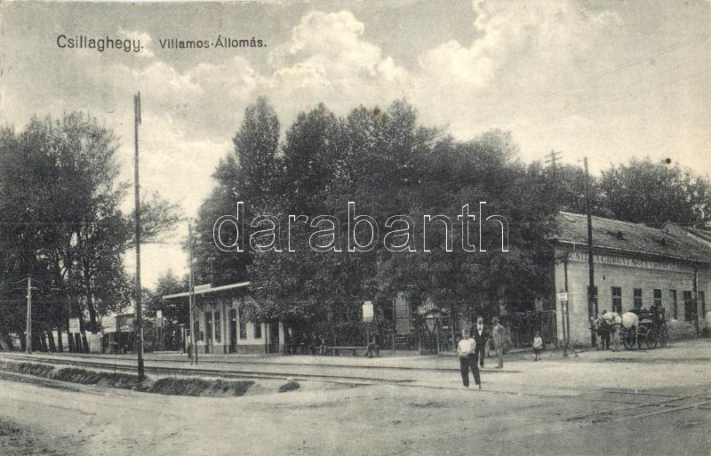 Leírás: Budapest III. Csillaghegy, Villamos állomás, nagyvendéglő, Baukó János kiadása (vágott / cut)