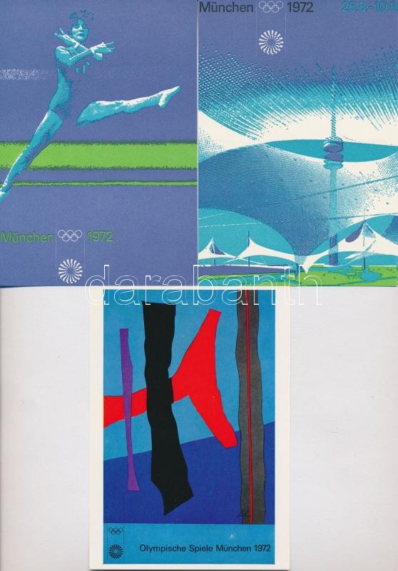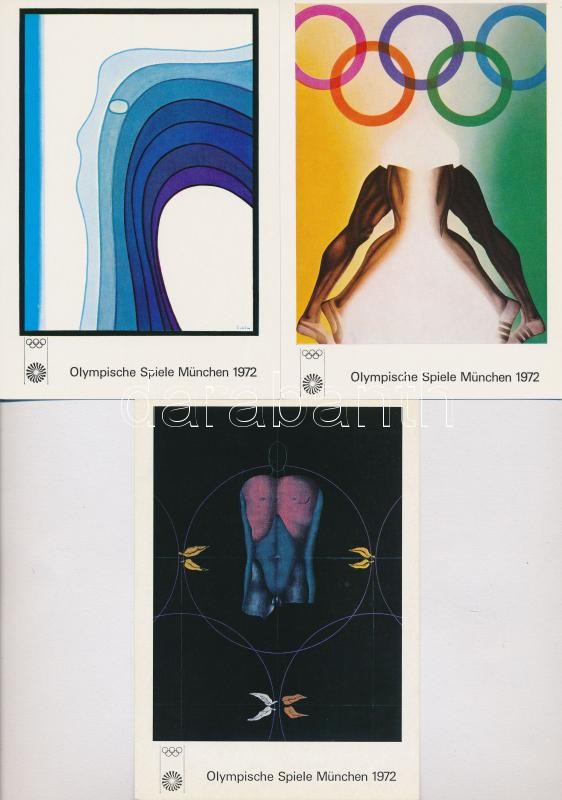 1972 München, Summer Olympics - 6 modern art postcards https://www.darabanth.com/hu/331-Gyorsarveres/331.0/Kepeslapok/Olimpia~2000081/1972-Munchen-Summer-Olympics-6-modern-art-postcards~II1847101