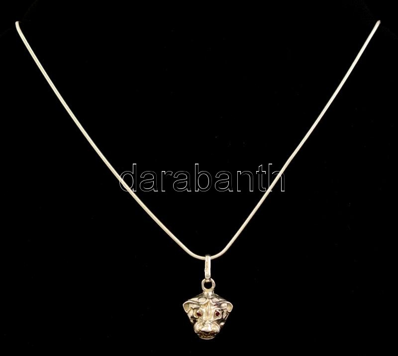 Leírás: Ezüst(Ag) kígyó nyaklánc, oroszlánfej függővel, jelzett, állítható hosszúság, h: 45-50 cm, 2,6×1,7 cm, bruttó: 11 g