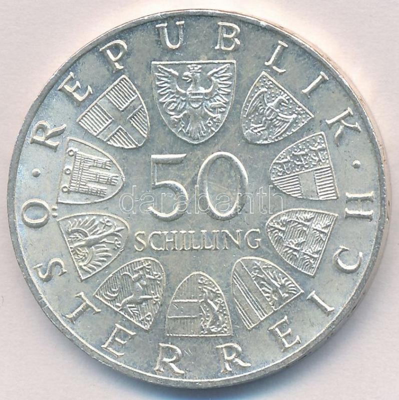 Austria 1965. ... https://www.darabanth.com/hu/331-Gyorsarveres/331.0/Numizmatika/Kulfoldi-fem-es-ezustpenzek~1000014/Ausztria-1965-50Sch-Ag-600-eves-a-Becsi-Egyetem-T2-Austria-1965-50-Schilling-Ag-600th-Anniv~II1848510