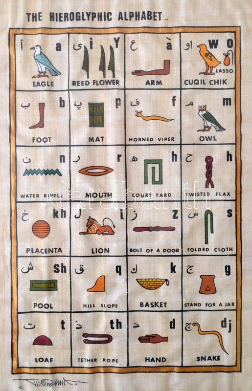 Hieroglif abc papíruszon. Kézzel festett, üveges klipsz keretben 35x50... https://www.darabanth.com/hu/332-Gyorsarveres/332.0/Festmeny-mutargy-papirregiseg-egyeb/Bolhapiac~500011/Hieroglif-abc-papiruszon-Kezzel-festett-uveges-klipsz-keretben-35x50-cm~II1851857
