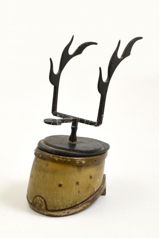 Leírás: Lópata-lópatkó asztaldísz, agancs formájú tolltartóval, m: 19,5 cm, 10x8 cm