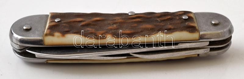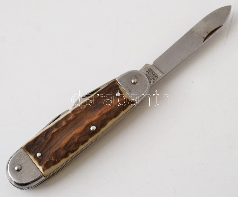 Leírás: Vadász bicska, agancsberakásos nyéllel, pengehossz: 7 cm, teljes hossz: 16 cm