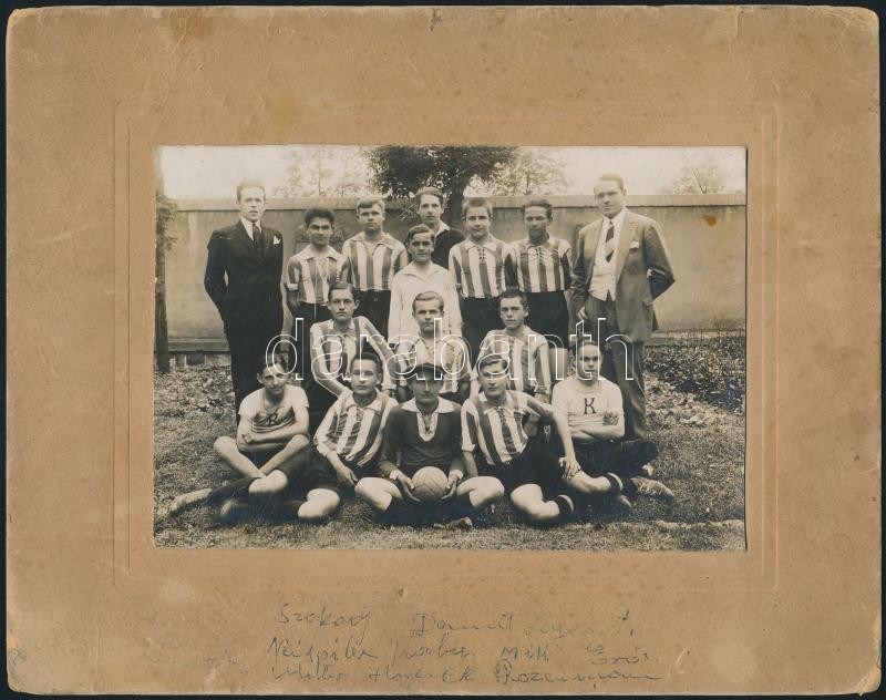cca 1930-1940 Focicsapat, fotó, kartonra ragasztva, hátulján feliratoz... https://www.darabanth.com/hu/332-Gyorsarveres/332.0/Festmeny-mutargy-papirregiseg-egyeb/Foto~500021/cca-1930-1940-Focicsapat-foto-kartonra-ragasztva-hatuljan-feliratozva-11-5C39716-5-cm~II1856522