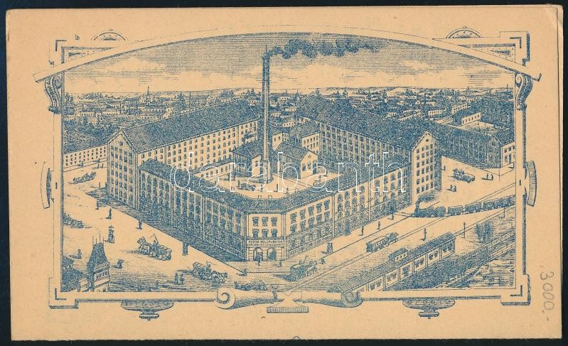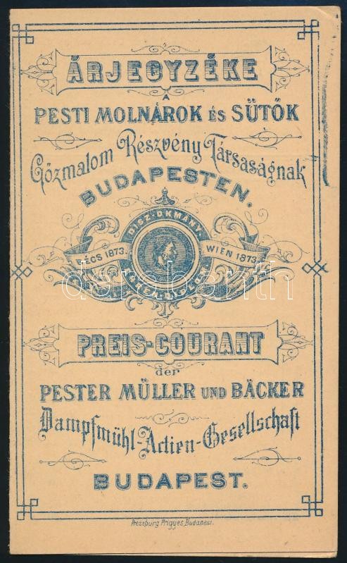 Leírás: 1895 Pesti Molnárok és sütők gőzmalom Rt. árjegyzéke. Hátoldalon a malom képével.