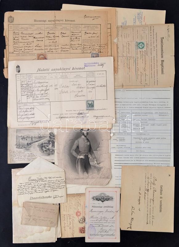 cca 1850-1940 Vegyes okmány és nyomtatvány tétel. Bizonyítványok, okmá... https://www.darabanth.com/hu/332-Gyorsarveres/332.0/Festmeny-mutargy-papirregiseg-egyeb/Okmanyok~500018/cca-1850-1940-Vegyes-okmany-es-nyomtatvany-tetel-Bizonyitvanyok-okmanybelyeges-iratok-lev~II1859431