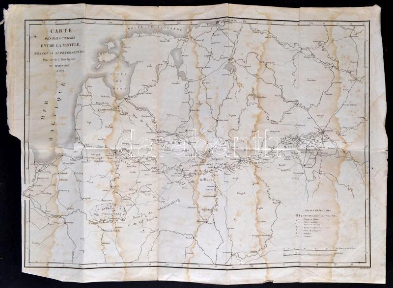 1812 Moszkva, Szent Pétervár és a Visztula környékének rézmetszetű térképe. Foltos. 48x37 cm / Moscow ,St Petersbourg and the area of VIstula. Etching. Stained