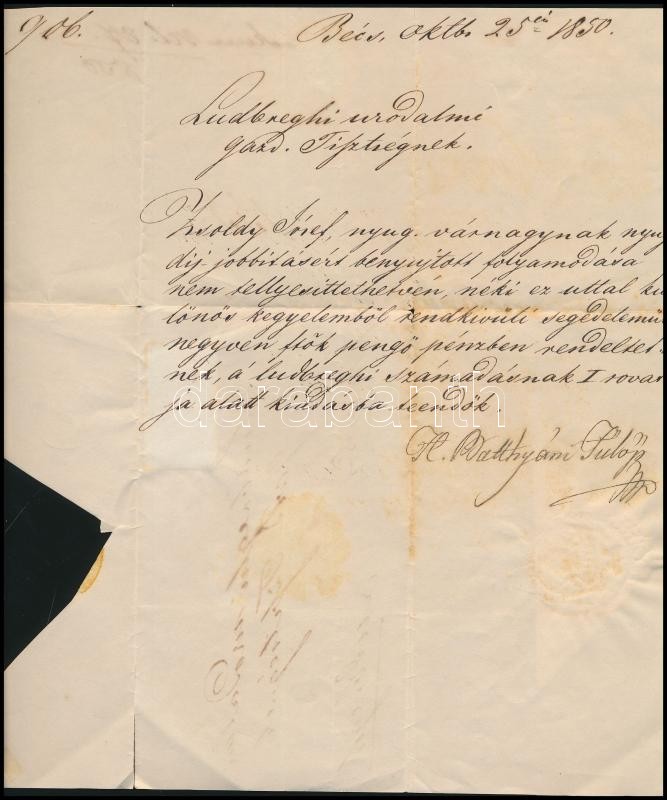 Leírás: 1850 herceg Batthyány Fülöp (1781-1870) saját kézzel aláírt levele ludbregi (Varasd megyei) gazdatisztjének. Jó bérmentesítessel