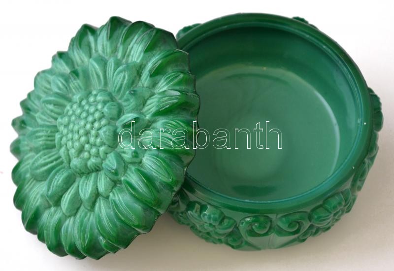 Malachit üveg bonbonier, jelzés nélkül, apró karcolással, d: 10 cm https://www.darabanth.com/hu/332-Gyorsarveres/332.0/Festmeny-mutargy-papirregiseg-egyeb/Uvegtargyak~500008/Malachit-uveg-bonbonier-jelzes-nelkul-apro-karcolassal-d-10-cm~II1856584