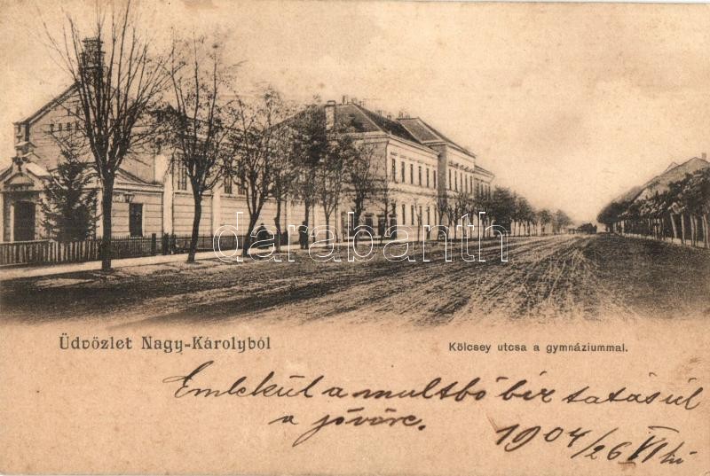 1904 Nagykároly, Carei; Kölcsey utca a gimnáziummal, városi tornaterem... https://www.darabanth.com/hu/332-Gyorsarveres/332.0/Kepeslapok/Erdely~2000005/1904-Nagykaroly-Carei-Kolcsey-utca-a-gimnaziummal-varosi-tornaterem-Kiadja-Csokas-Laszlo~II1854365