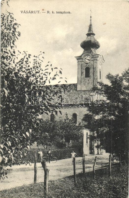 Vásárút, Trhová Hradská; Római katolikus templom, férfi kerékpárral. F... https://www.darabanth.com/hu/332-Gyorsarveres/332.0/Kepeslapok/Felvidek~2000088/Vasarut-Trhova-Hradska-Romai-katolikus-templom-ferfi-kerekparral-Fotograf-Adolf-Brunner~II1855314