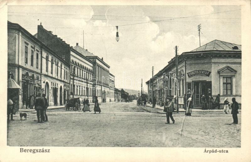 Beregszász, Berehove; Árpád utca, Gyógyszertár, üzletek / street view,... https://www.darabanth.com/hu/332-Gyorsarveres/332.0/Kepeslapok/Karpatalja~2000089/Beregszasz-Berehove-Arpad-utca-Gyogyszertar-uzletek-street-view-pharmacy-shops-EK~II1858659