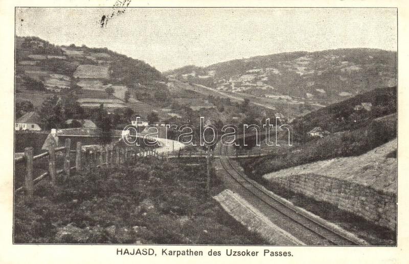 Hajasd, Voloszjanka, Volosyanka; Karpathen des Uzsoker Passes / Kárpátok az Uzsoki-hágónál, vasúti sínek. Kiadja M. Großmann / Carpathian Mountains by Uzhok pass, railway tracks