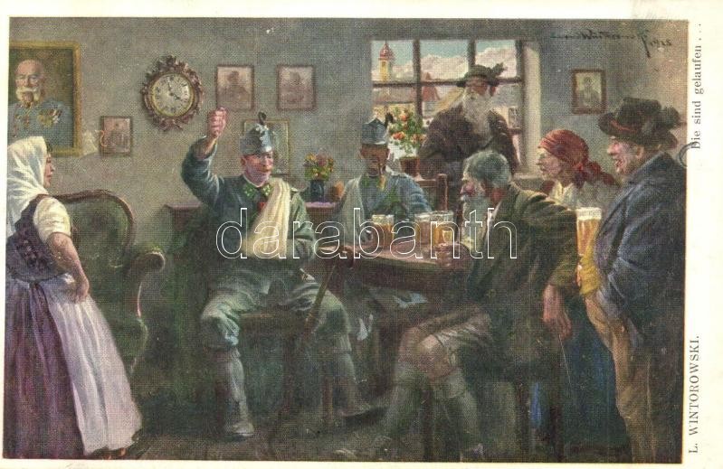Leírás: Die sind gelaufen / WWI K.u.k. military art postcard. W.R.B. & Co. Nr. 242. s: L. Wintorowski