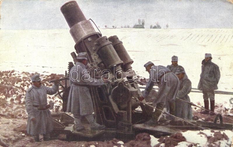 Weltkrieg 1914-1915. Österr.-ung. 30,5 cm Mörser in Feuerstellung / Osztrák magyar 30,5 cm-es mozsár tüzelésre készen / WWI K.u.k. military, cannon. Kilophot K. 798. (EK)