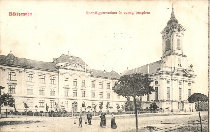 1908 Békéscsaba, Rudolf gimnázium, Evangélikus templom https://www.darabanth.com/hu/332-Gyorsarveres/332.0/Kepeslapok/Magyarorszag~2000004/1908-Bekescsaba-Rudolf-gimnazium-Evangelikus-templom~II1859615