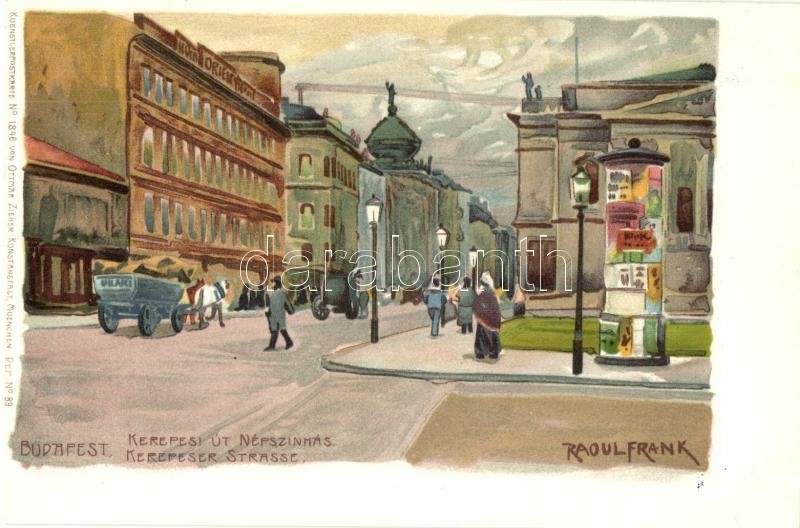 Leírás: Budapest VIII. Kerepesi út, Népszínház, Hotel Orient szálloda. Ottmar Zieher Künstlerpostkarte No. 1846. litho s: Raoul Frank