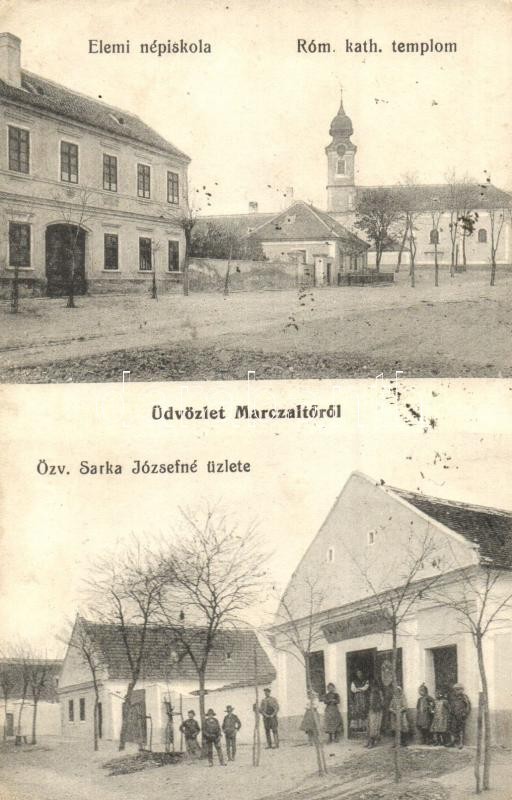 Leírás: Marcaltő, Római katolikus templom, Özv. Sarka Józsefné üzlete és saját kiadása (EK)