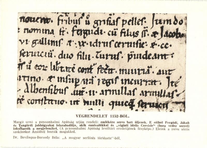 Végrendelet 1152-ből. Dr. Bevilaqua-Borsody Béla "A magyar serfőzés története"-ből / Will from Dr. Béla Bevilaqua-Borsody's 'History of the Hungarian Brewery'