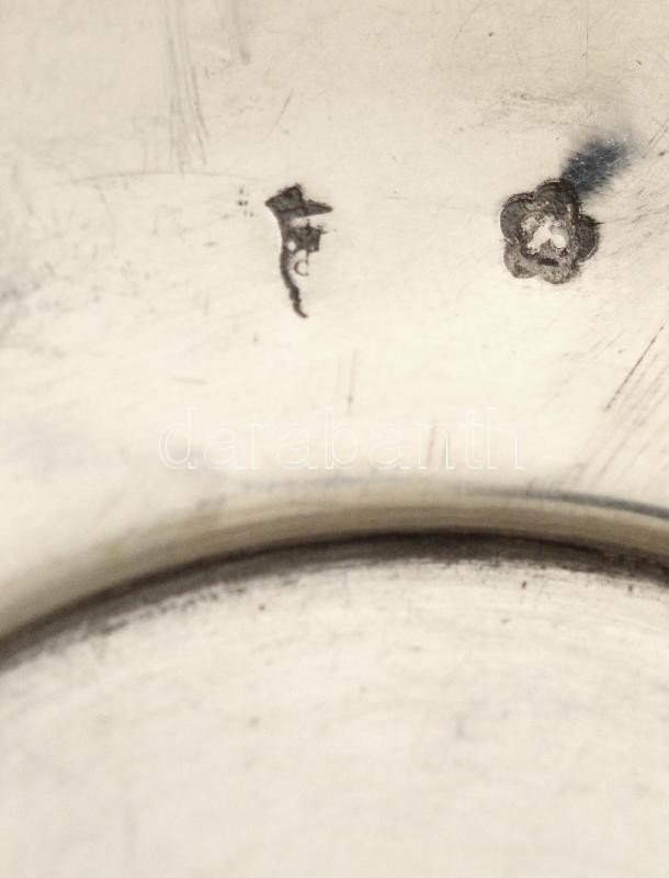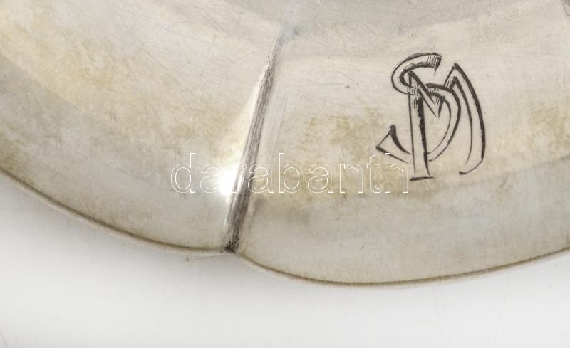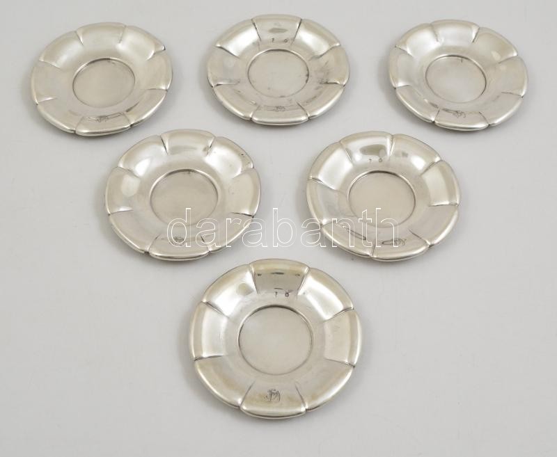 Leírás: 6 db ezüst tálka monogrammal. Jelzett, 800-as ezüst. Összesen 475g d:11 cm / 6 silver trays.