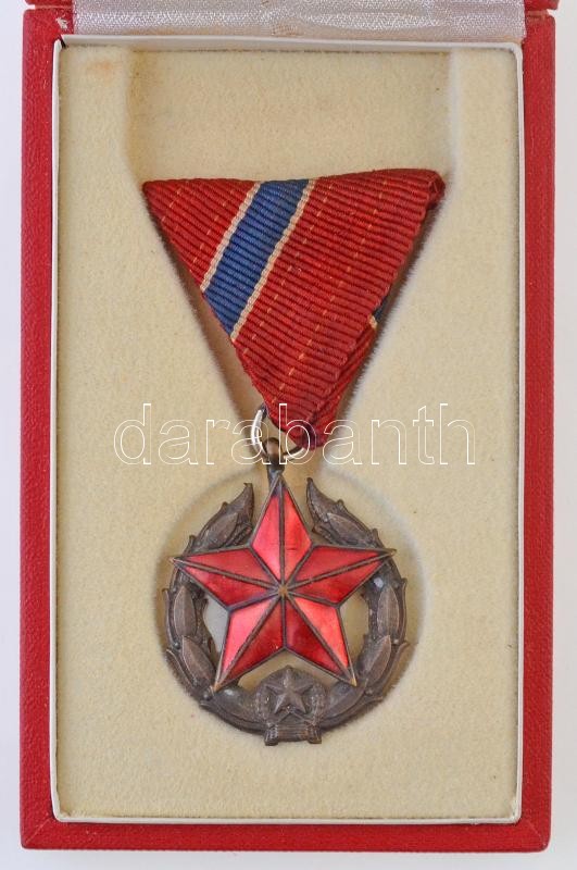 Leírás: 1951. "Közbiztonsági Érem" bronz fokozata a karhatalom tagjai részére, patinázott Br kitüntetés mellszalagon, dísztokban T:2