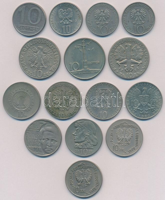 Pol... https://www.darabanth.com/hu/332-Gyorsarveres/332.0/Numizmatika/Kulfoldi-fem-es-ezustpenzek~1000012/Lengyelorszag-1959-1987-10Zl-15xklf-forgalmi-emlekkiadasok-T2-Poland-1959-1987-10-Zlotych-~II1856731