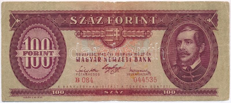 Adamo F27 https://www.darabanth.com/hu/332-Gyorsarveres/332.0/Numizmatika/Magyar-bankjegyek~1000006/1947-100Ft-TIII-III-ly-Adamo-F27~II1855706